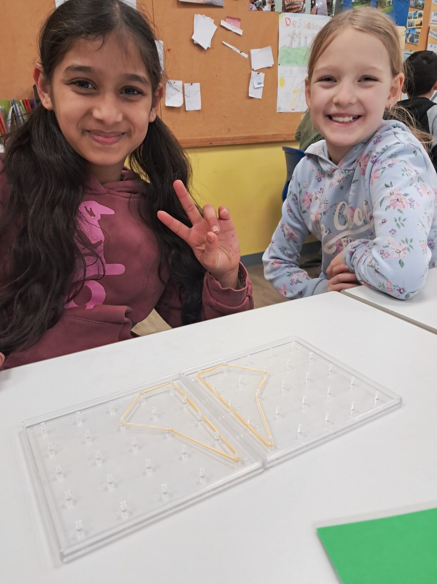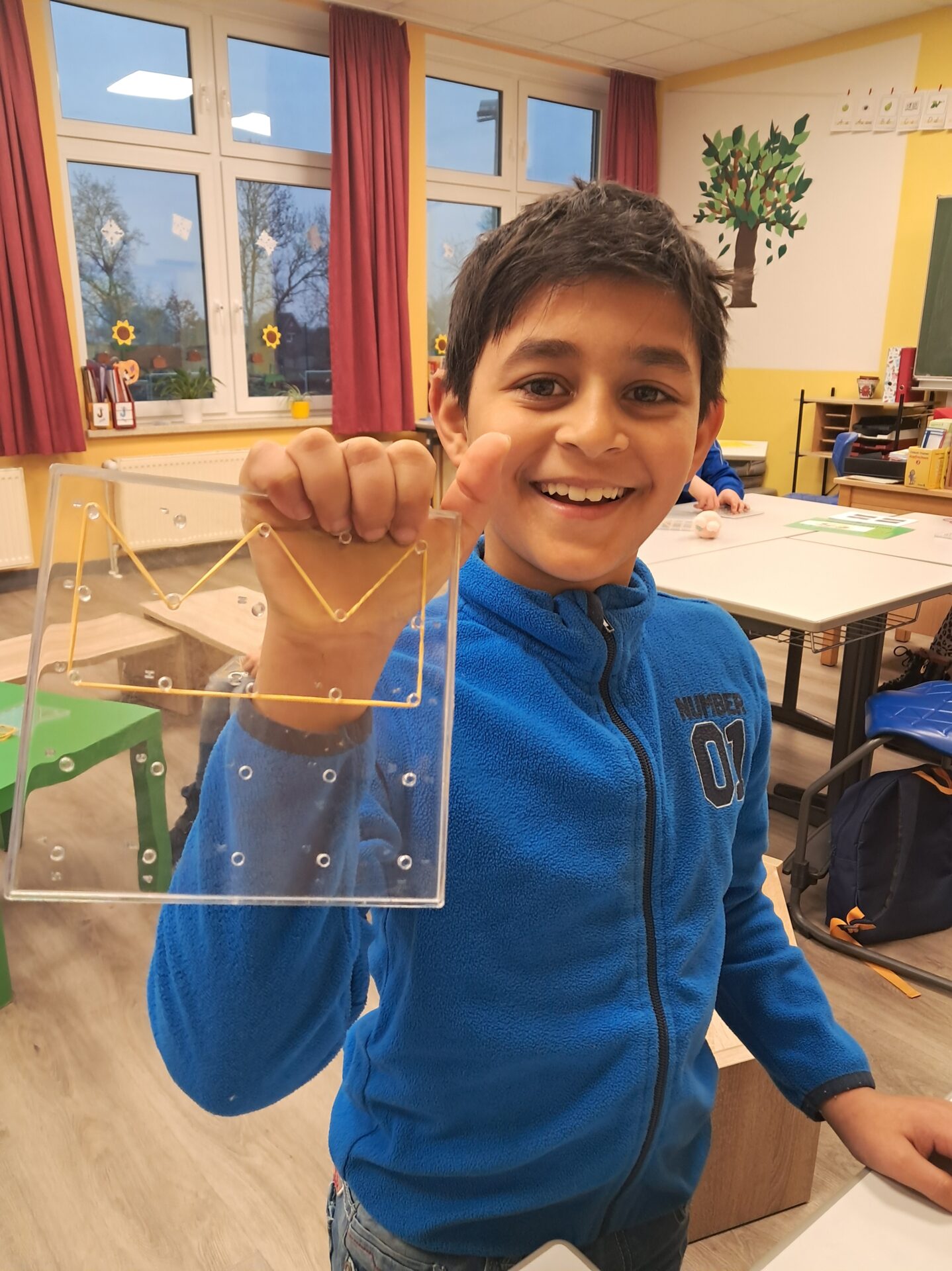 Frau Schwierjohann kündigte zur Begrüßung am Projekttag Mathe einen Tag ohne Zahlen an und blickte in viele erstaunte und fragende Gesichter. Wie konnte das zusammenpassen? Schnell geriet die Frage aber in den Hintergrund, denn die Kinder waren in jahrgangsgemischten Gruppen 1/2 und 3/4 eifrig dabei, Wurfbecher und Boote zu falten, Faltbilder zu erstellen, Figuren auf dem Geobrett zu spannen, Symmetrie- und Tangrambilder zu legen sowie Spiele wie Ubongo, Qwirkle oder Make `n` Break zu spielen. Dabei gab es tatkräftige Unterstützung von einigen Eltern und Großeltern. (Wir sagen DANKE!) Die Geometrie stand im Mittelpunkt - und da brauchte es eben keine Zahlen, um einen tollen Tag zu haben!